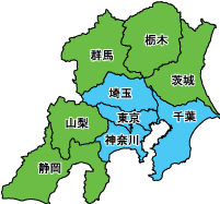 東京都・神奈川県・埼玉県・千葉県を中心とした首都圏。